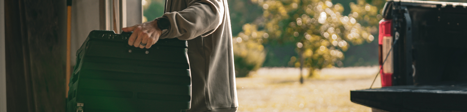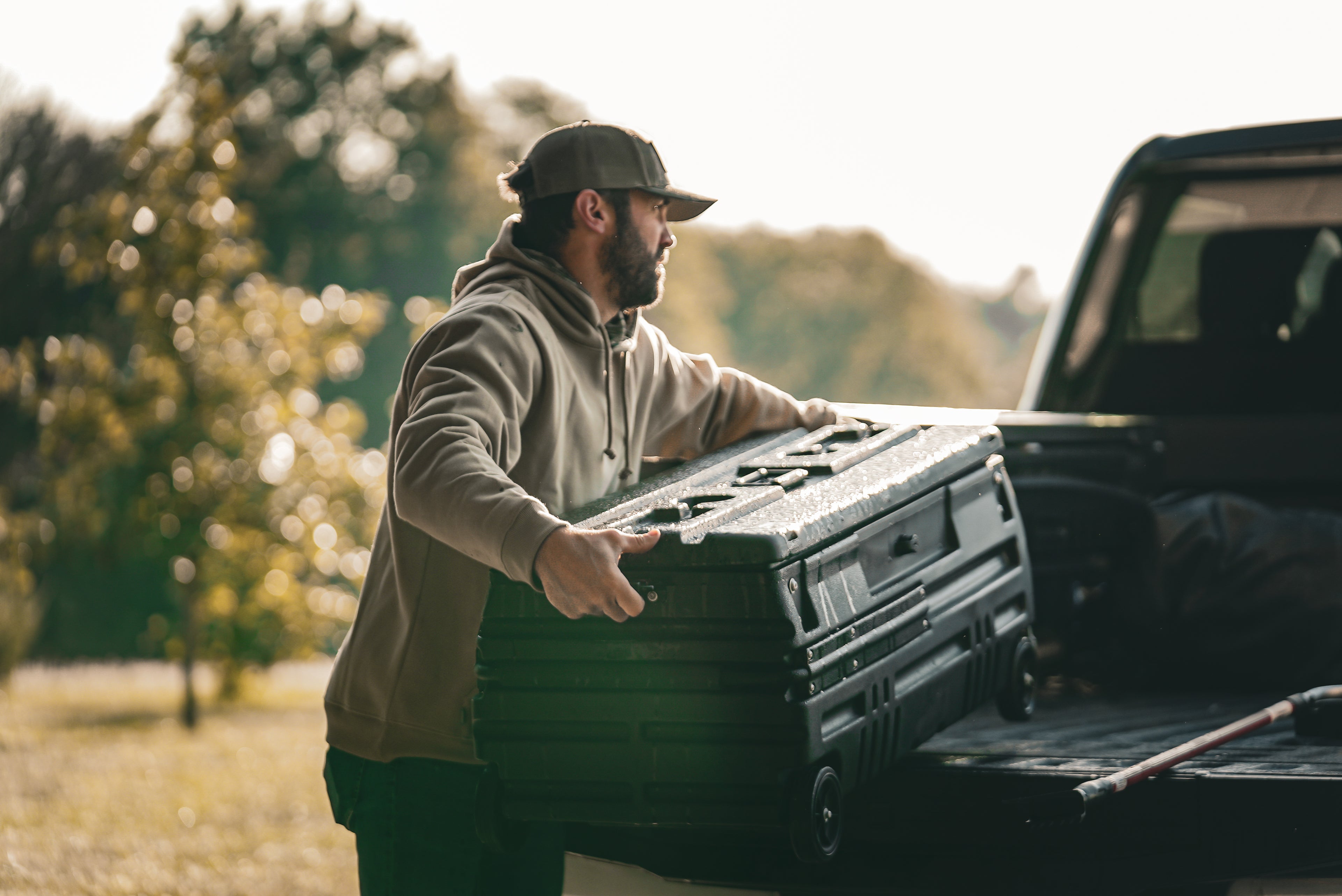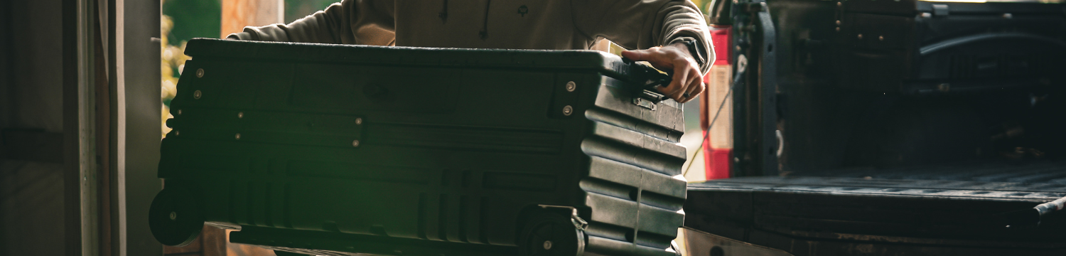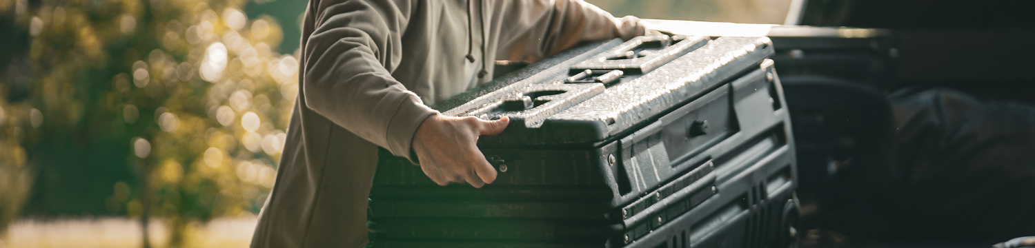 The DÜHA Standard Duty and Extreme Duty Squad Boxes come with a divider kit for the bottom that allows up to 4 shorter, more tactical guns to be stored safely, even with scopes. These dividers can be used to split up tools, gear, or guns for your own personal fit, but in addition to that, the DÜHA Standard Duty and Extreme Duty Squad Boxes are equipped with two large top dividers for smaller gear to be right at the top. Ammo, calls, cleaners, optics, small tools, trail cameras and whatever else you may need can easily be stored and divided at the top, so you don't need to dig through the bottom of the bin for that one small item.