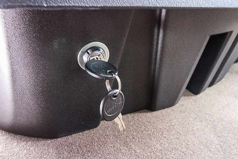 Featuring integrated keyed lock security and internal mounting hardware, the Lockbox ensures that even in the event of a break-in, unauthorized access to your belongings is prevented. Tailored to fit the specific make and model of your truck, the Lockbox maximizes storage space while maintaining a perfect fit. Installation is hassle-free, requiring simple placement under the rear seat and fastening in place, making the DÜHA Lockbox an essential addition for safeguarding your possessions on the road.
