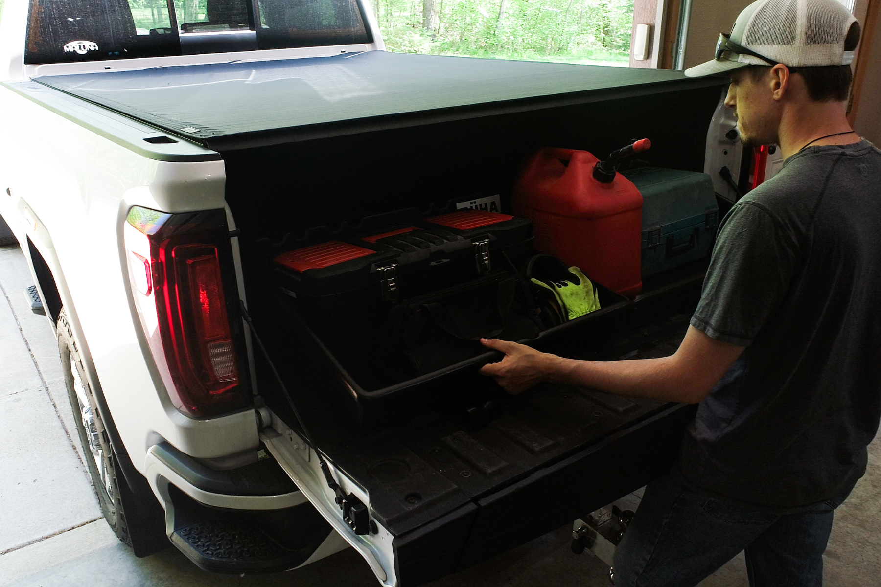 Easily keep everything at arm's reach without crawling under or rolling back your tonneau cover. The CargoStop™ prevents tools, smaller items, groceries, gas cans, and other gear from rolling around in your truck bed. The DÜHA CargoStop™ is the latest innovation in truck bed storage, designed to keep your gear secure and your truck bed organized. Whether you're a contractor, outdoor enthusiast, or simply someone who values a tidy truck bed, CargoStop™ is the perfect addition to your vehicle.