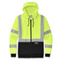 Introducing our high-visibility hooded sweatshirt, designed for safety and comfort in any environment. Crafted from durable 8.6-ounce 100% polyester smooth-faced fleece, it ensures warmth and flexibility. The black bottom front and cuffs provide a cleaner appearance, while the reflective 2-inch tape meets ANSI 107 requirements, offering 360-degree visibility on the body and sleeves. Featuring a three-panel hood with drawcord closure and taped neck, this sweatshirt combines style with functionality. With front pouch pockets, a molded center front zippered closure, and rib knit cuffs and hem, it's the perfect choice for those who prioritize safety without compromising on comfort.