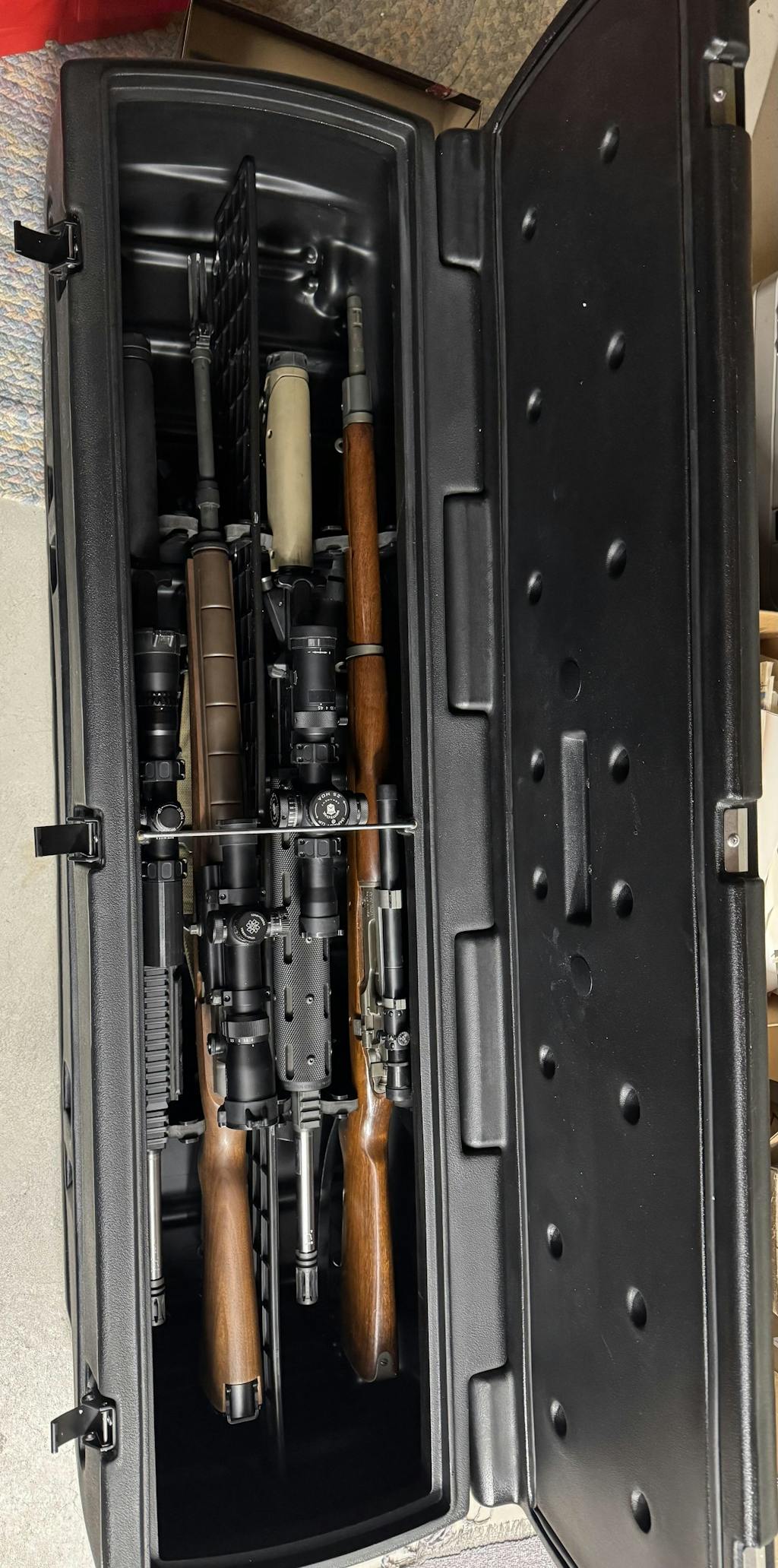 The DÜHA Tote comes with a divider kit for the bottom that allows up to 4 long guns to be stored safely, even with scopes. These dividers can be used to split up tools, gear, or guns for your own personal fit, but in addition to that, the DÜHA Tote is equipped with two large top dividers for smaller gear to be right at the top. Ammo, calls, cleaners, optics, small tools, trail cameras and whatever else you may need can easily be stored and divided at the top, so you don't need to dig through the bottom of the bin for that one small item.